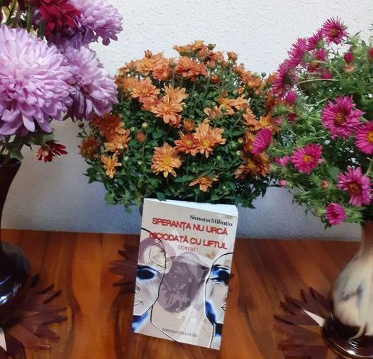 În anotimpul crizantemelor, am mai primit un dar, cu parfum de toamnă târzie, de la neprețuita mea prietenă, doamna Simona Mihuțiu, de data aceasta o piesă de teatru, „Speranța nu urcă niciodată cu liftul". O carte elegantă, rafinată, de la coperte, hârtia de tipar, tehnoredactare, care te invită la lectură, cu ochii, cu mintea, dar mai ales cu sufletul.
