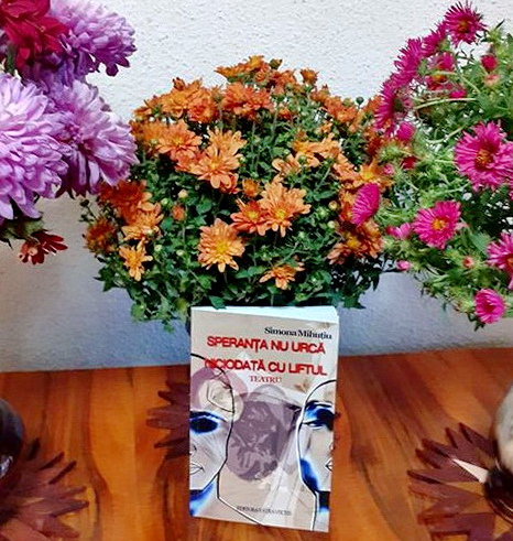 În anotimpul crizantemelor, am mai primit un dar, cu parfum de toamnă târzie, de la neprețuita mea prietenă, doamna Simona Mihuțiu, de data aceasta o piesă de teatru, „Speranța nu urcă niciodată cu liftul". O carte elegantă, rafinată, de la coperte, hârtia de tipar, tehnoredactare, care te invită la lectură, cu ochii, cu mintea, dar mai ales cu sufletul.